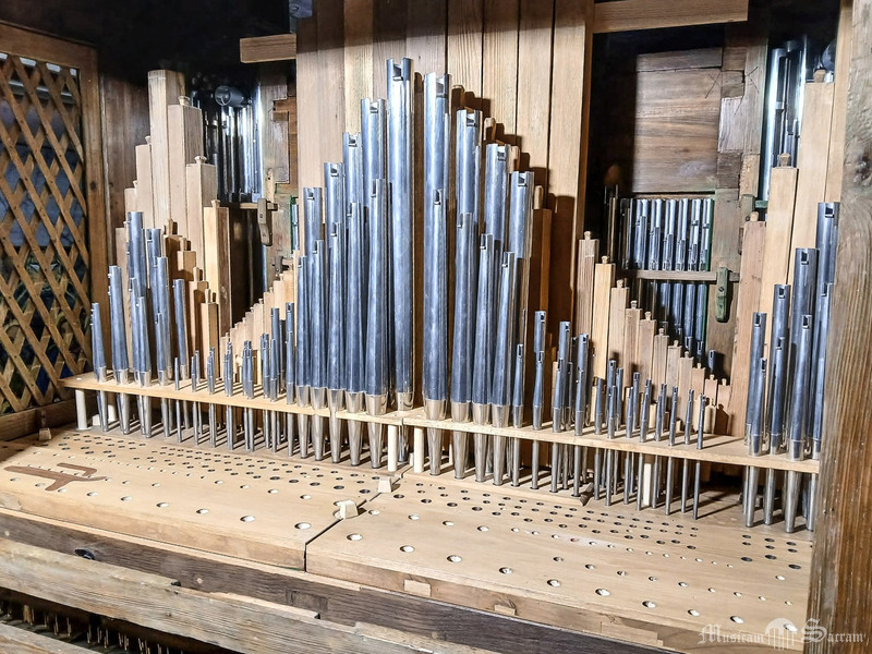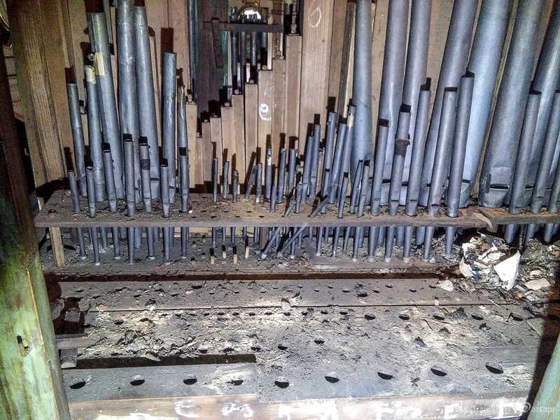 Instrument na przestrzeni lat byl wielokrotnie przerabiany. Dobudowana amatorsko sekcja pedału wymagała powiększenia miecha, przez co przerobiono cokół szafy. Opisany pedał nigdy nie był w pełni sprawny.
