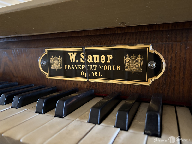 Organy dla juncewskiej świątyni powstały w renomowanej firmie Wilhelma Sauera z Frankfurtu nad Odrą i oznaczone numerem opusowym 461. Katalog firmy Sauer (s. 6) w okolicy numerów opusowych 461–469 nie wymienia chronologicznie tego instrumentu (op. 458: St. Nicolai, Pernau, dzisiejsza Parnawa w Estonii oraz op. 464: Evang. Kirche, Missen), wymienia za to (na stronie 7) 10-głosowe organy w Juncewie zbudowane w 1886 r. (czyli niedługo po ukończeniu budowy kościoła), brak jednak numeru dzieła w katalogu.