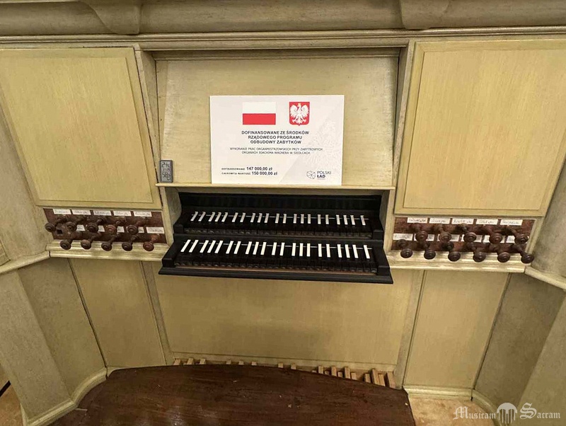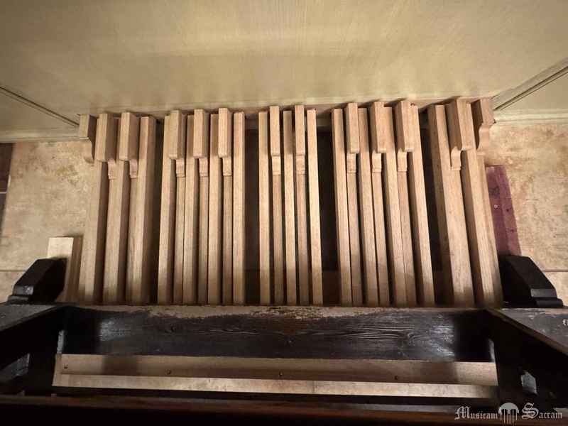 Manuały C–d3 (podział na bas i dyszkant pomiędzy klawiszami h i c1), pedał C–d1.