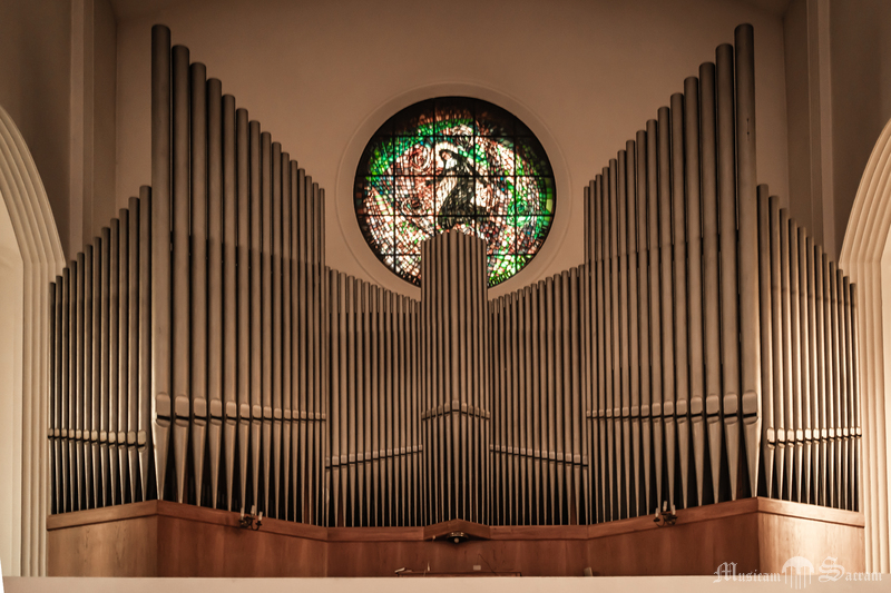 Na szafie organowej umieszczona jest tablica następującej treści: