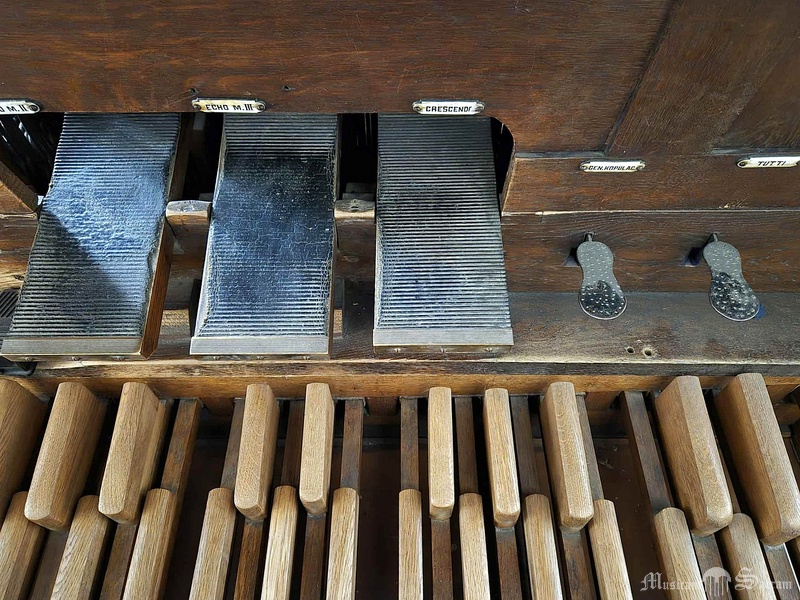 Instrument wymaga remontu. Nie działa część urządzeń oraz głosów. Puzon całkowicie nie zdatny do użytku. Organy wymagają remontu i czyszczenia
