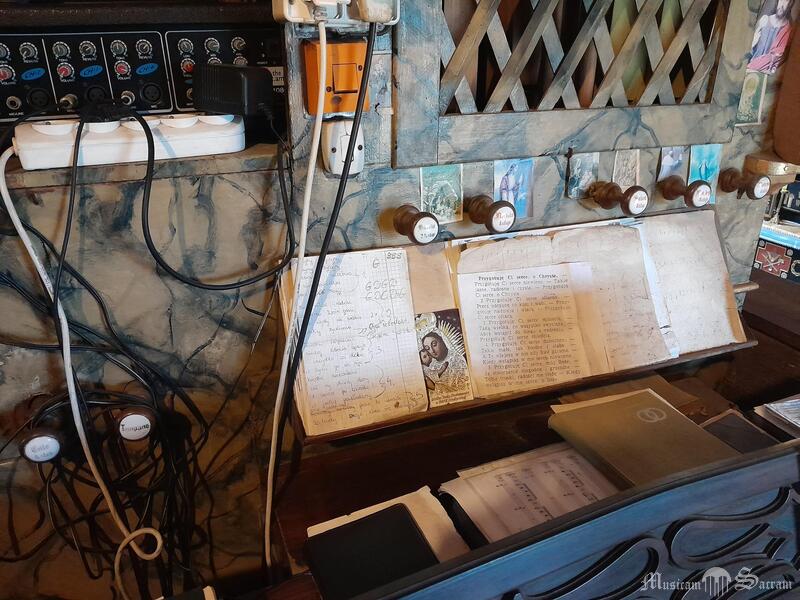 Instrument nieczynny. Stół gry wbudowany w lewy bok szafy organowej.