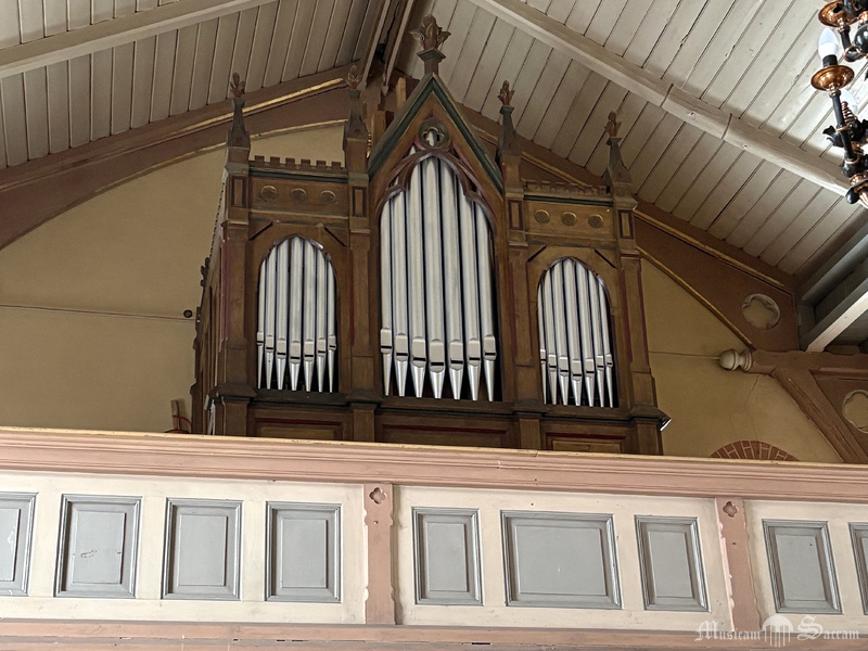XIX-wieczny instrument głubczyckiego organmistrza J.M.V. Haasa. Prospekt jednosekcyjny, neogotycki, znajdują się w nim głosy: Principal 8'. Miech klinowy. Wiatrownice klapowo-zasuwowe. Stół gry wbudowany w lewy bok szafy organowej. Jest jedno puste miejsce na wiatrownicy manuału I, gdzie znajdowała się dawniej Gamba 8', której piszczałki zostały usunięte na stałe z szafy organowej. Instrument na co dzień używany w liturgii, wymaga remontu.