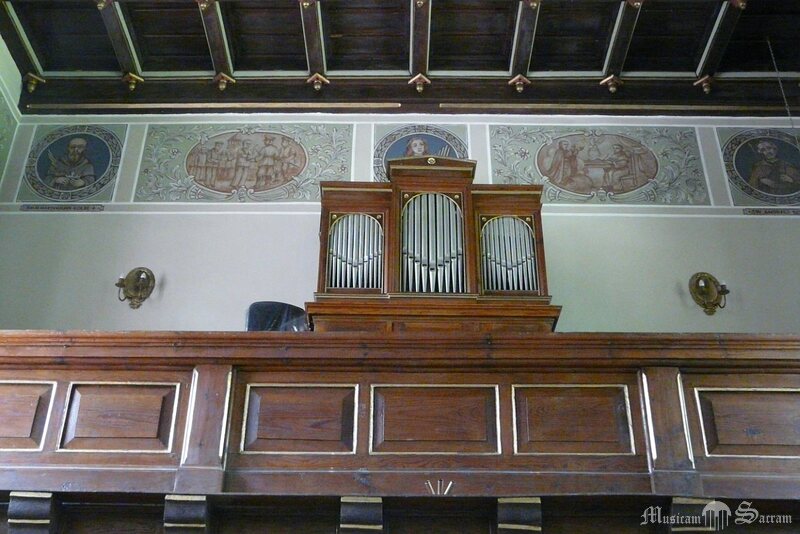 Stół gry wbudowany w bok szafy organowej. Skala manuału: C-d3.