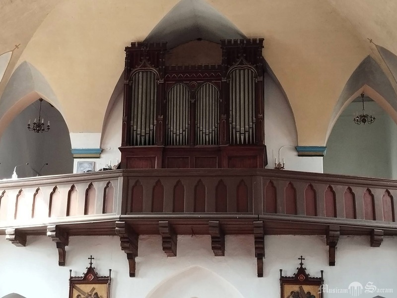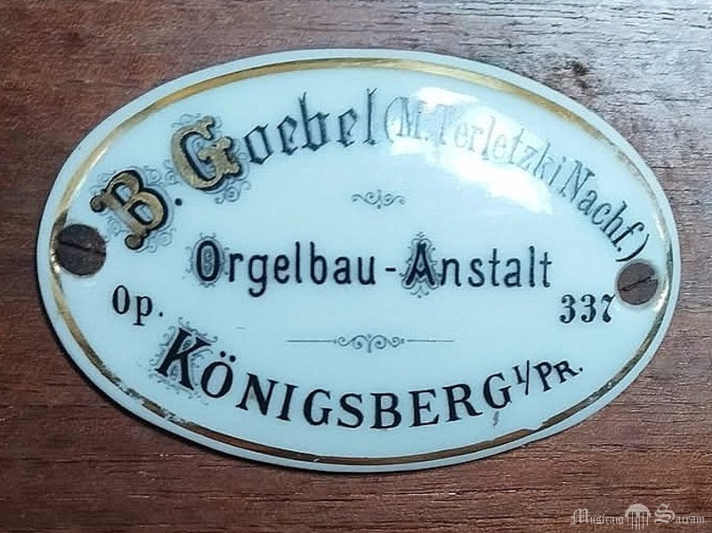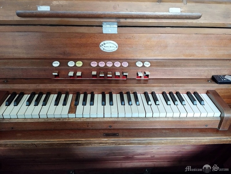 Instrument w stanie dostatecznym, wymaga jedynie strojenia. Grający siedzi bokiem do ołtarza.