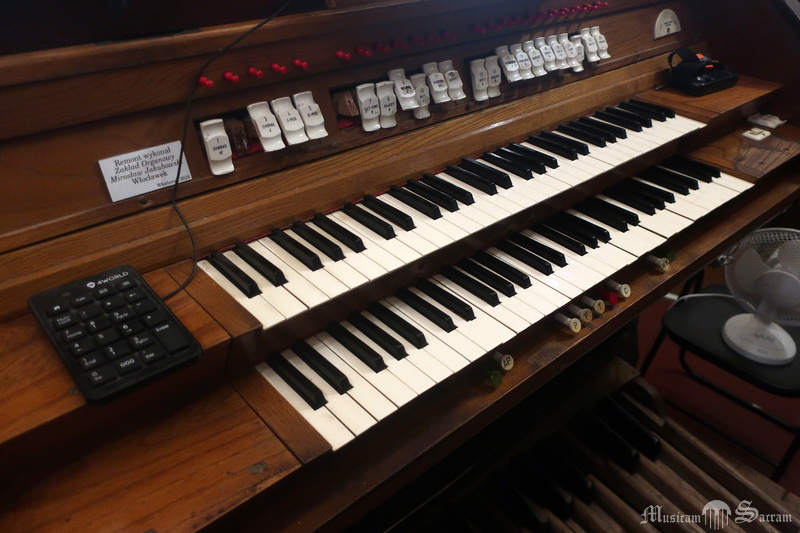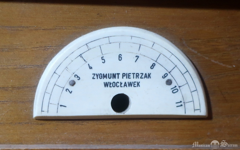 Instrument 17-głosowy, o trakturze pneumatycznej, z wolnostojącym stołem gry o dwóch manuałach (C–a3) i pedale (C–f1).